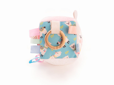 Cubo sensorial en gabardina,súper blandito con accesorios de juego.