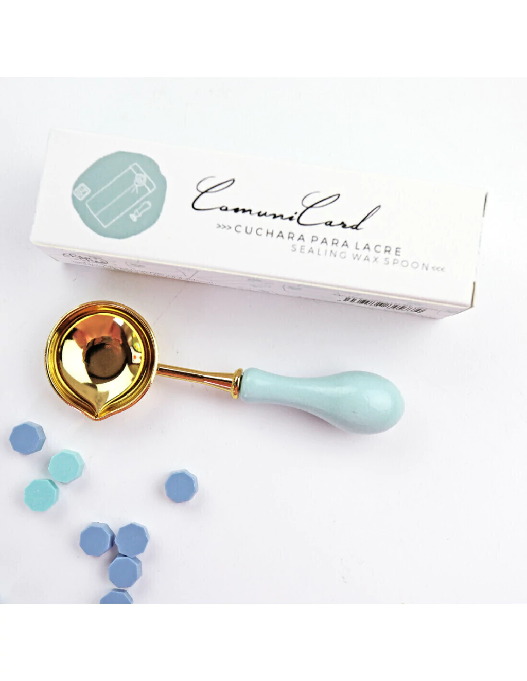 Cuchara metálica para fundir cera de lacres. Mango de madera