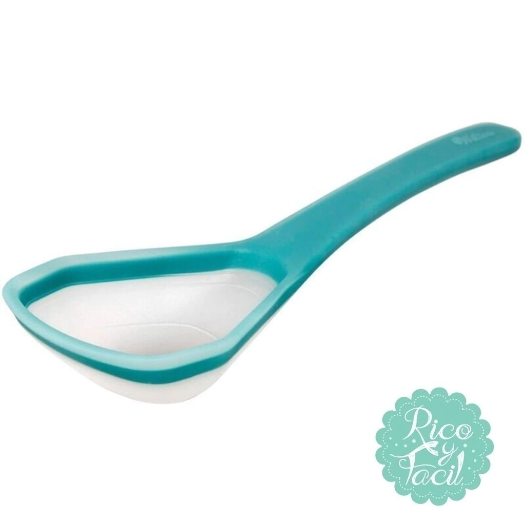 Mida, vierta y mezcle fácilmente con esta cuchara versátil, incluye las medidas de las tazas medidoras. Fabricada en Silicona.La guía de medición dentro de la cuchara facilita verter la cantidad perfecta cada vezColor turquesaMaterial: Nylon y Silicona