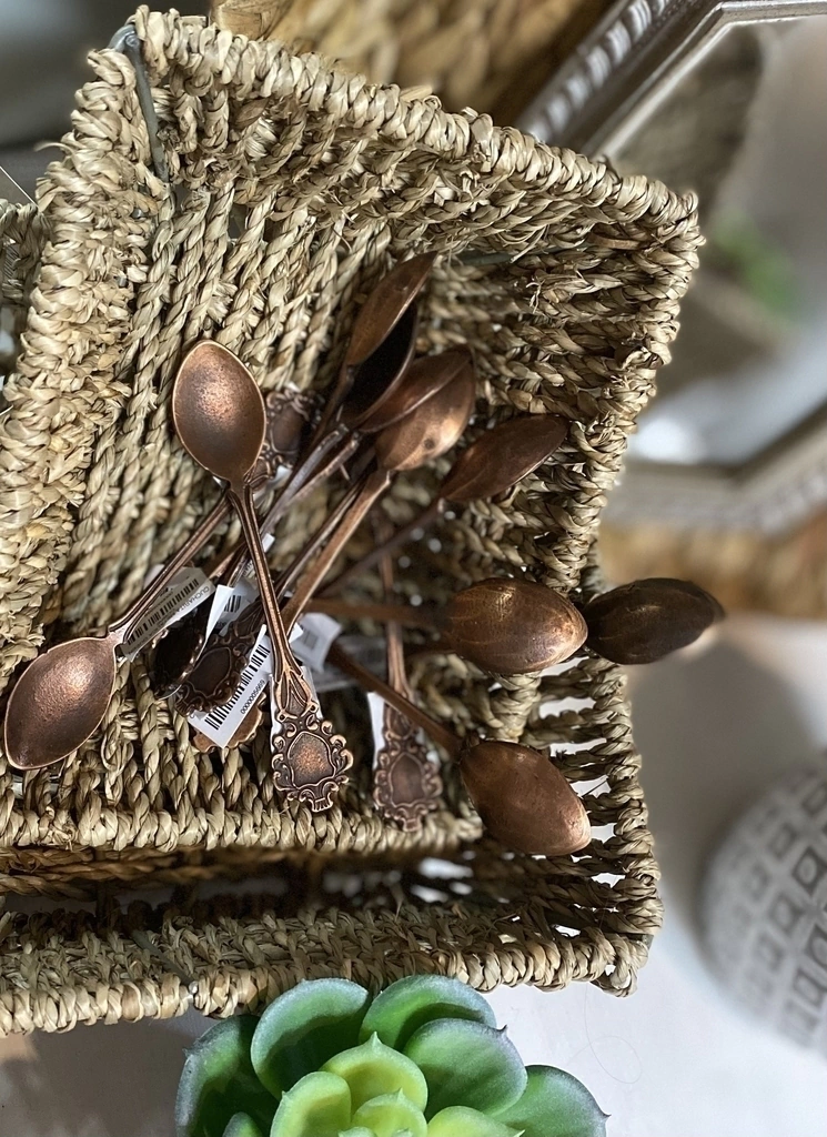 Elegante cucharita metálica de acabado cobre, perfecta para disfrutar postres y acompañar mesas con estilo. Su diseño moderno y sofisticado la convierte en un accesorio ideal para ocasiones especiales o el uso diario.