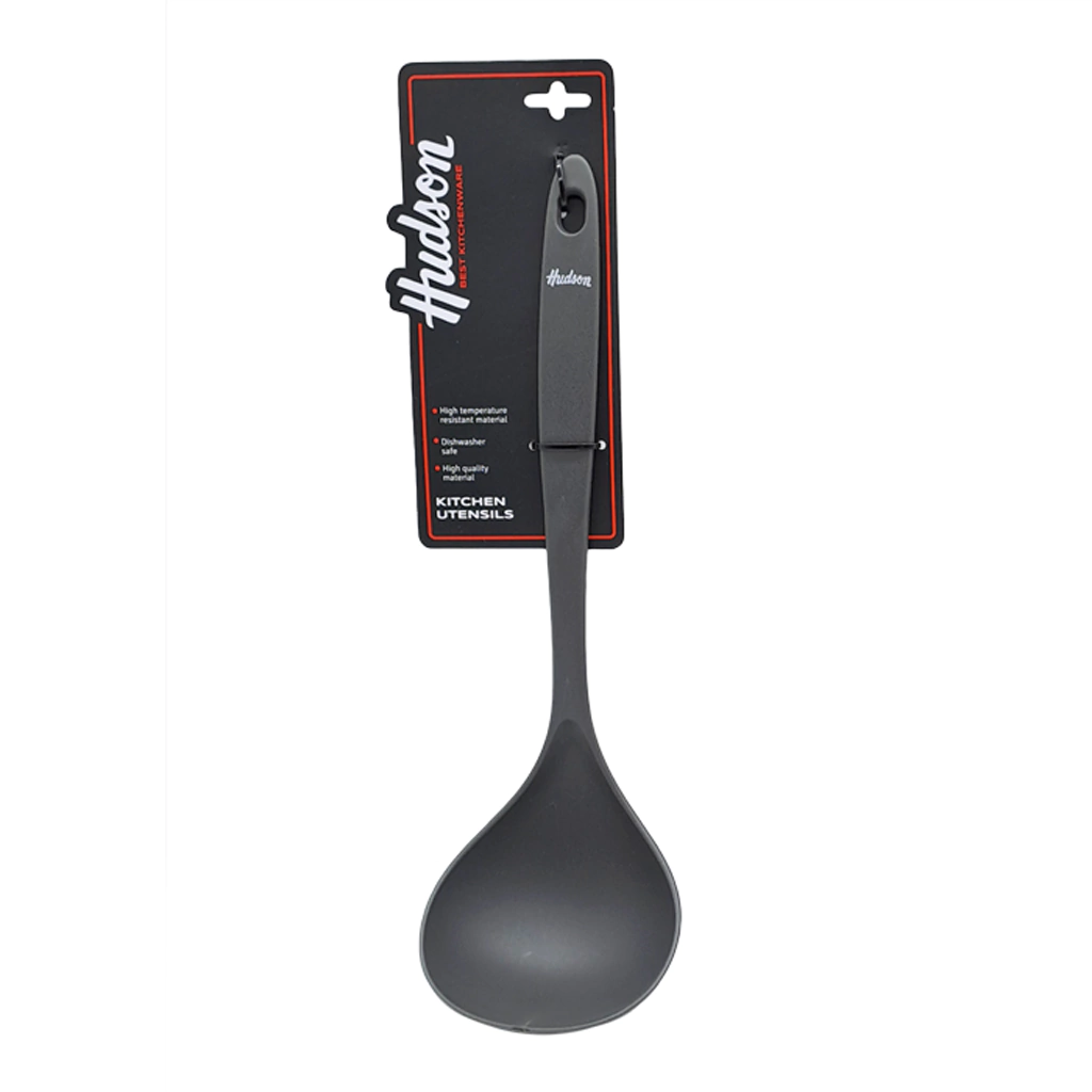 EL CUCHARÓN DE NYLON HUDSON ES EL ALIADO PERFECTO PARA SERVIR SOPAS, GUISOS Y SALSAS. FABRICADO EN NYLON RESISTENTE AL CALOR, ES IDEAL PARA UTILIZAR EN OLLAS Y SARTENES ANTIADHERENTES SIN RIESGO DE RAYARLAS. SU DISEÑO ERGONÓMICO ASEGURA UN MANEJO CÓMODO Y PRECISO, MIENTRAS QUE SU MATERIAL DURADERO LO HACE APTO PARA EL USO DIARIO. UN UTENSILIO IMPRESCINDIBLE QUE COMBINA PRÁCTICA Y ESTILO PARA TU COCINA.