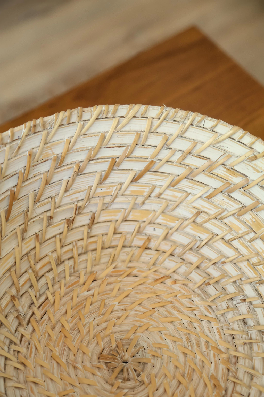 Centro de mesa de fibras naturales con tonalidades blancas.