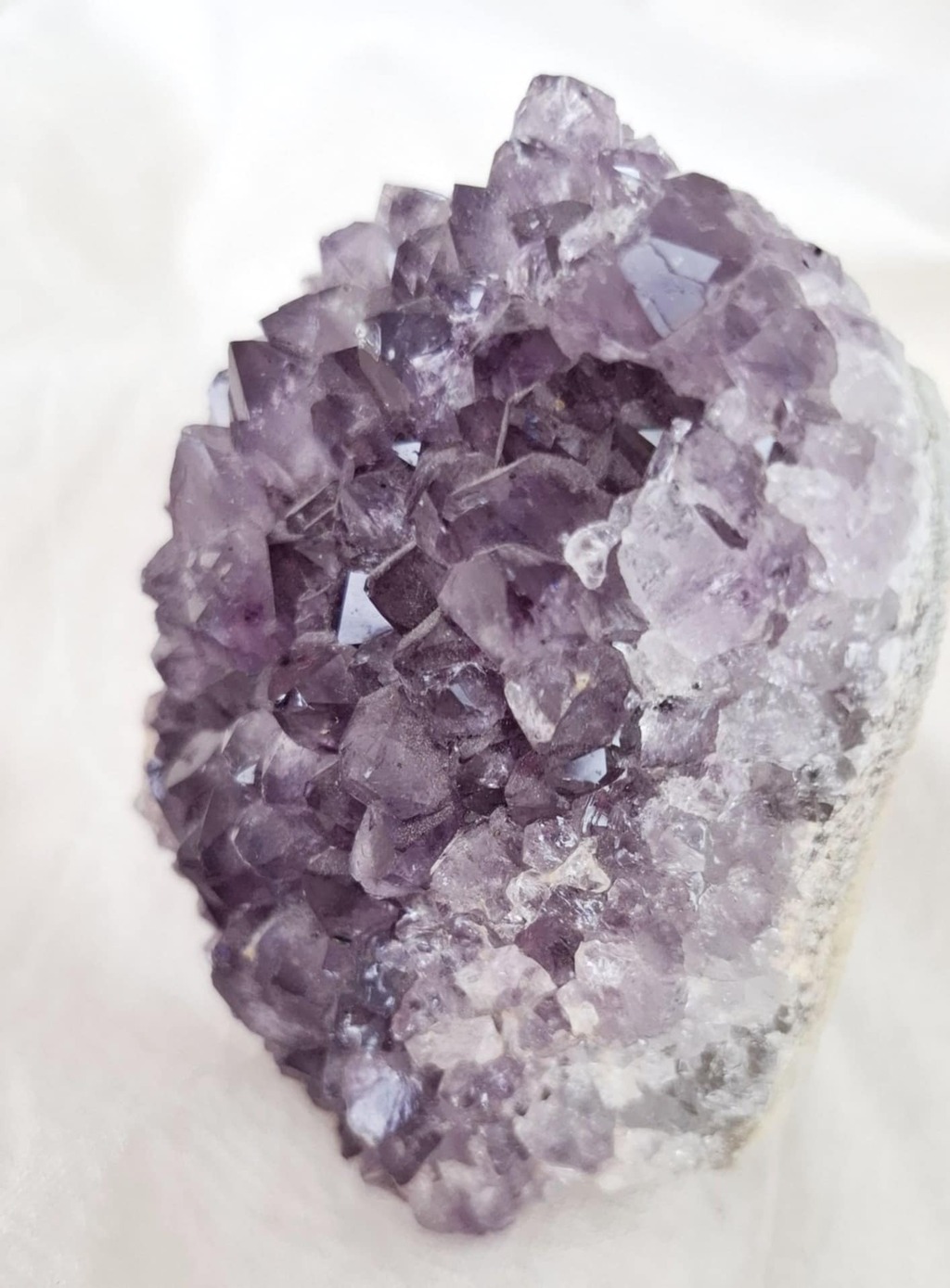 Amatista: La amatista es una piedra muy poderosa y protectora. Tranquilizante natural que ayuda a bloquear las energías ambientales negativas. Limpia el aura y transmuta la energía negativa además de estimular los chacras de la garganta y coronilla.