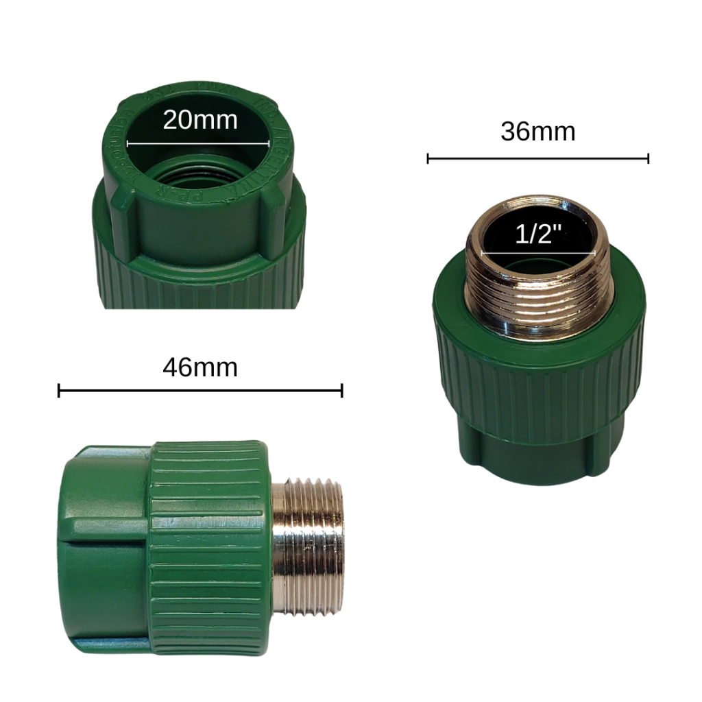 - Un extremo termofusion 20mm y el otro extremo rosca M de 1/2".