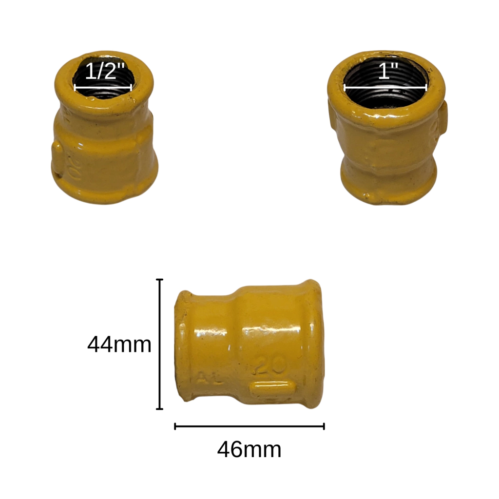 Características- Marca: DEMA.- Linea: EPOXI.- Diametro: 1" x 1/2".- Articulo: Cupla reduccion hembra hembra.- Un extremo Rosca H 1", Un extremo Rosca H 1/2".- Roscado Amarillo Epoxi para GAS.- Permite Aprobacion colocado exterior y/o embutido en pared.- Accesorios de Fundicion Maleable recubiertos con pintura epoxi.- Aseguramiento de la Calidad - ISO 9001- Excepcionales ventajas en la instalación.- Línea con recubrimiento epoxi para conducción de gas.- Espesor del recubrimiento superior a Normas.- Roscas calibradas y libres de pintura.- Garantía escrita por 50 Años.