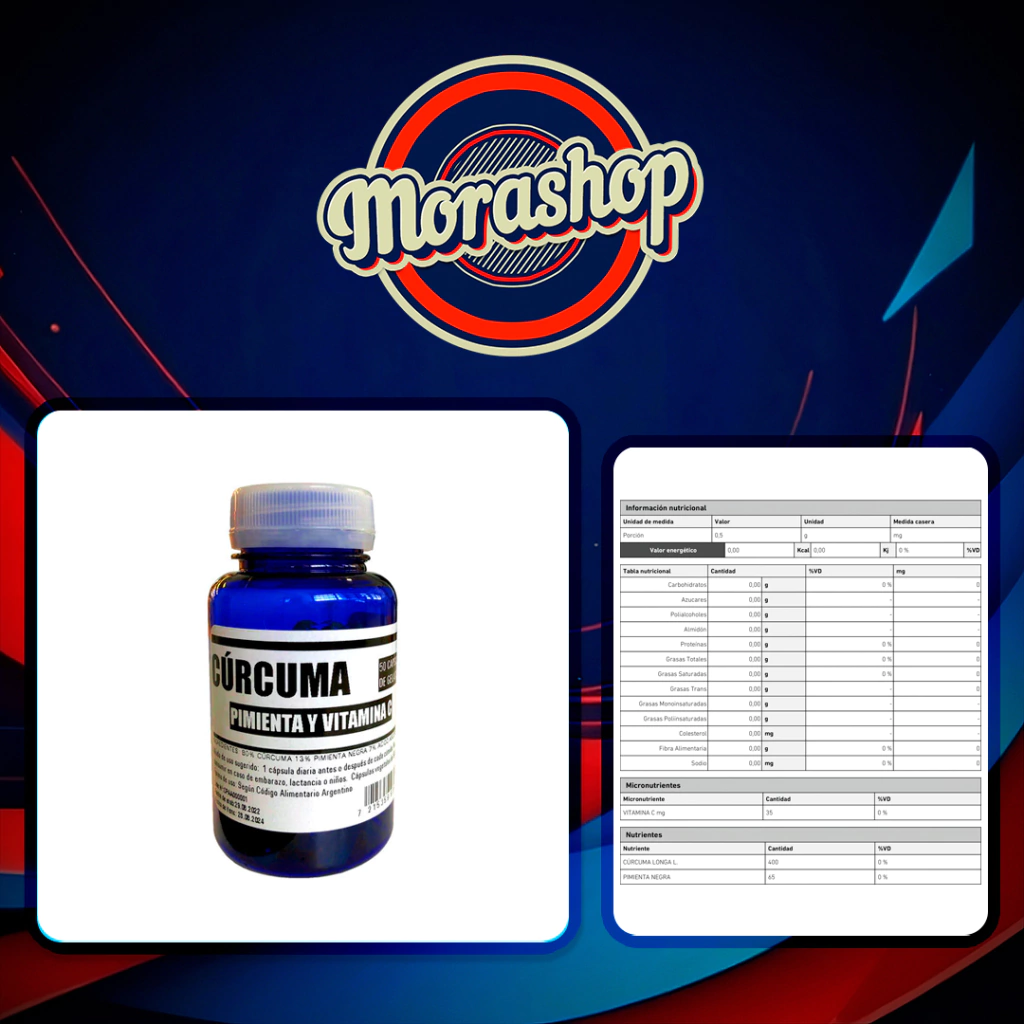 Curcuma + Pimienta Negra + Vitamina C X 50 Capsulas
