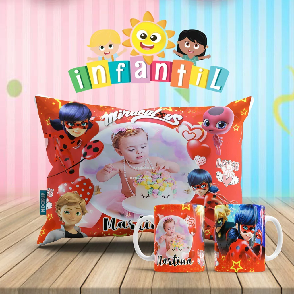 💥16 Diseños (8) Almohadones y (8) Tazas Día del Niño💥