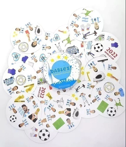 DABLES CAMPEON MUNDIAL / Edad: +6 / Jugadores de 2 a 8 / Tiempo de juego: 15 minutosDables! CAMPEON MUNDIAL es un juego divertido para jugar en familia y/o amig@s. Imposible parar de jugar. Desafía tu mente.¿Cómo Jugar?1- Dividí todo el mazo en partes iguales entre los jugadores.2- Pone la/s carta/s que sobra/n en el medio.3- Buscá la coincidencia entre las imágenes de tu carta y una de las imágenes de la carta del centro.4-Decí el nombre de la imagen en voz alta y apoya la carta encima de la carta del medio.-Si más de un jugador dice el nombre de la imagen al mismo tiempo, quedará la carta que primero toque le mazo del centro.NO HAY TURNOS!El que se queda sin cartas gana el juego!