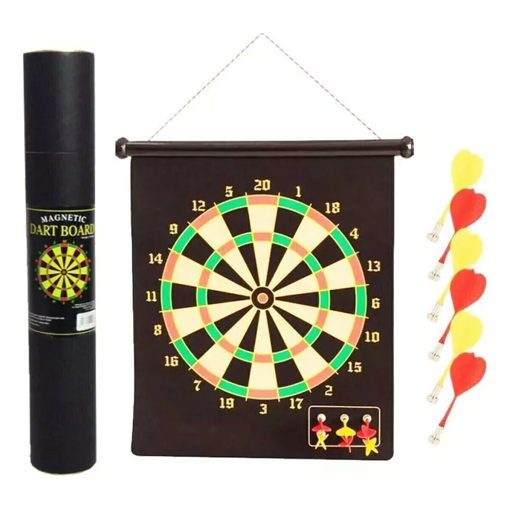 1 blanco reversible, 6 dardos magnéticos (en 2 colores) |