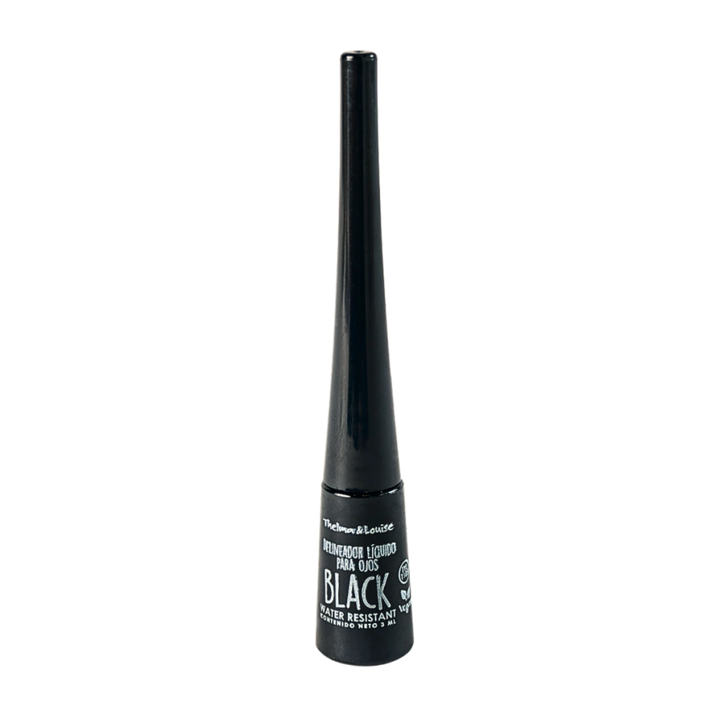 Delineador de ojos con aplicador flexible de fibra, que permite variar de trazos finos a gruesos solo con variar la presión del delineado.