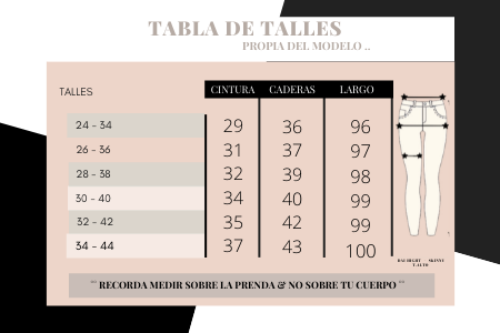 *Las medidas del jean no contempla la elasticidad del mismo, si estás entre 2 talles, te sugerimos elegir el más chico ya que seden como todo jeans con el mismo uso diario*