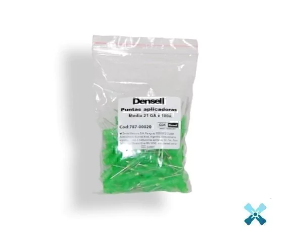 Cuerpo plástico y canula metálica flexible doblable segun la necesidad clínica.Para materiales viscosos. Gran flujo.Presentaciones:Cod.787-18 - Gruesa Tamaño: Diámetro interno 0.97mm Cod.787-20 - Media Tamaño: Diámetro interno 0.60mmCod.787-22 - Fina Tamaño: Diámetro interno 0.33mmCod.787-25 - X-Fina Tamaño: Diámetro interno 0.22mmMarca : DENSELL
