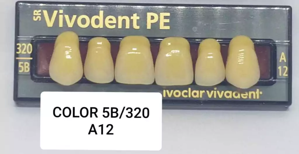 Dientes Vivodent Ivoclar Color 5B/3204 TABLETAS AL VALOR DE 3 ( SIN CAMBIO )CUADRADOS MEDIANOSModelos de piezas cuadradas Con esta forma angular, los incisivos centrales son los dominantes. La curvatura labial vertical es moderadaA12=ANTERIOR SUPERIORA6 = ANTERIOR INFERIORN5 = POSTERIOR SUPERIORN5 = POSTERIOR INFERIOR*LAS FORMAS CORRESPONDEN A LA TABLA DE COMBINACION.Los dientes SR Vivodent PE con Efecto perla poseen una gran dureza, densidad, resistencia a la solubilidad y estabilidad cromática.VentajasElevada estéticaEspecialmente adecuado para la prótesis totalCuello caracterizadoLos molares SR Orthosit PE están compuestos por Isosit (material altamente reticulado).La perfecta oclusión y la elevada resistencia a la abrasión los convierten en los molares óptimos para una prótesis de gran duración.VentajasCombinación con SR Vivodent PEEspecialmente indicados para prótesis total