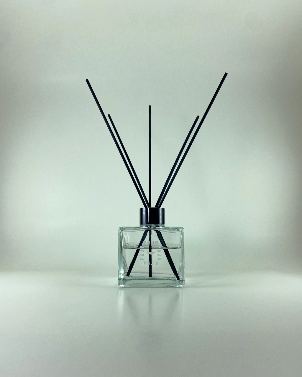 Difusor de vidrio color cristal con detalles en color negroMedida sin varillas 8,5cm alto x 7cm ladosMedida con varillas 22cm altoPresentación en caja de regalo con difusor de vidrio + varillas + aroma de 250ml
