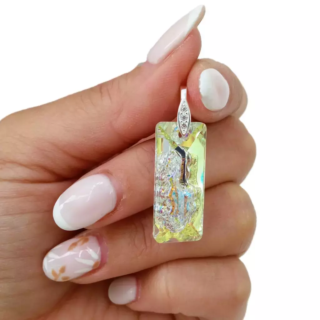 Dije de cristal sw rectangulo boreal con engarce micropave