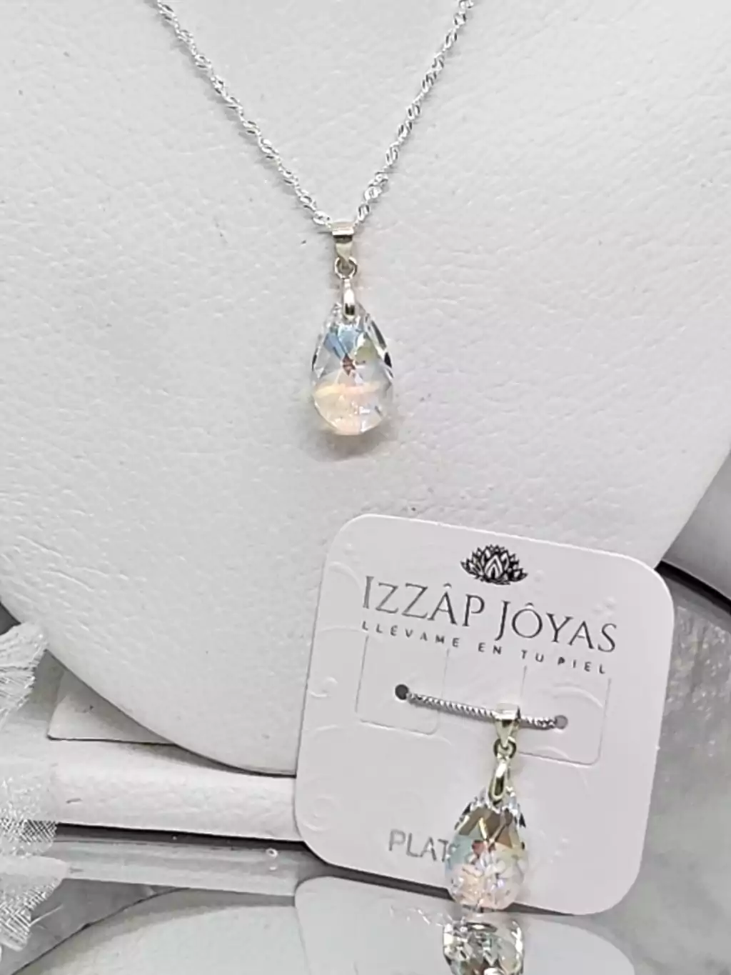 Dije Cristal Swarovski® GOTA de 16 mm con engarce de plata 925