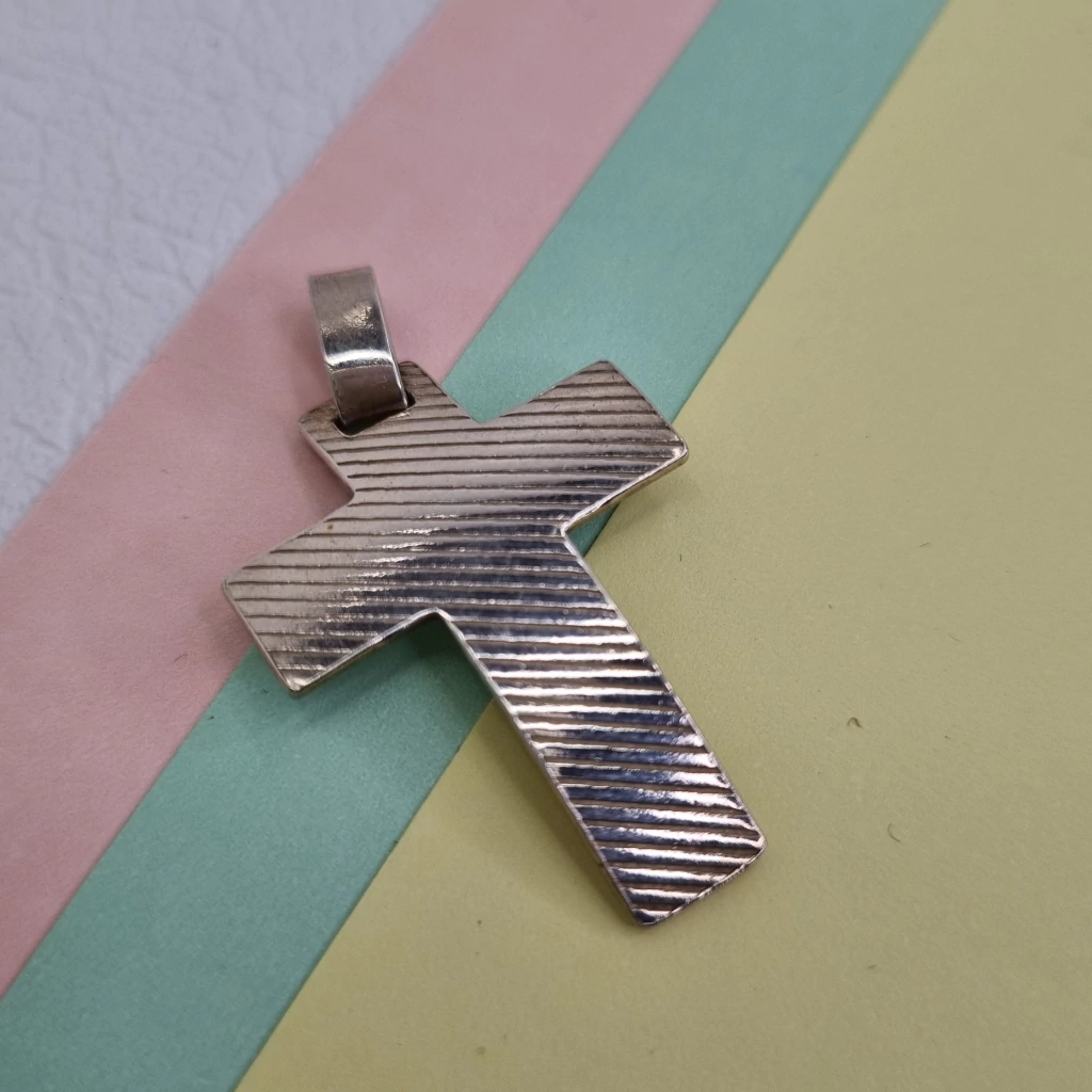 DIJE CRUZ CURVADA DE PLATA 34×20mm COD: 6351