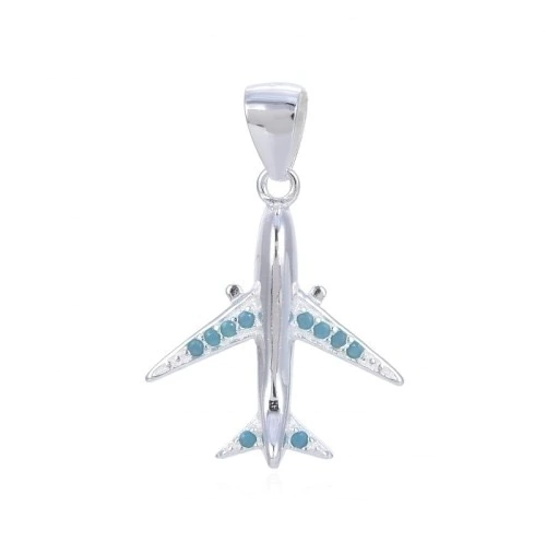 Dije de avión de plata 925 engarzados con cubics celestes, importado de Italia