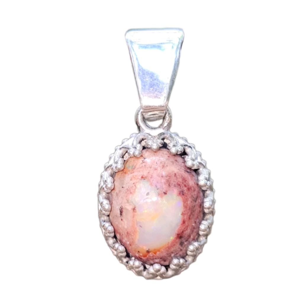Dije en Plata 925 de 30mm con Ópalo en Cantera con opalescencia, engarzado en Corona | Única Pieza en stock.