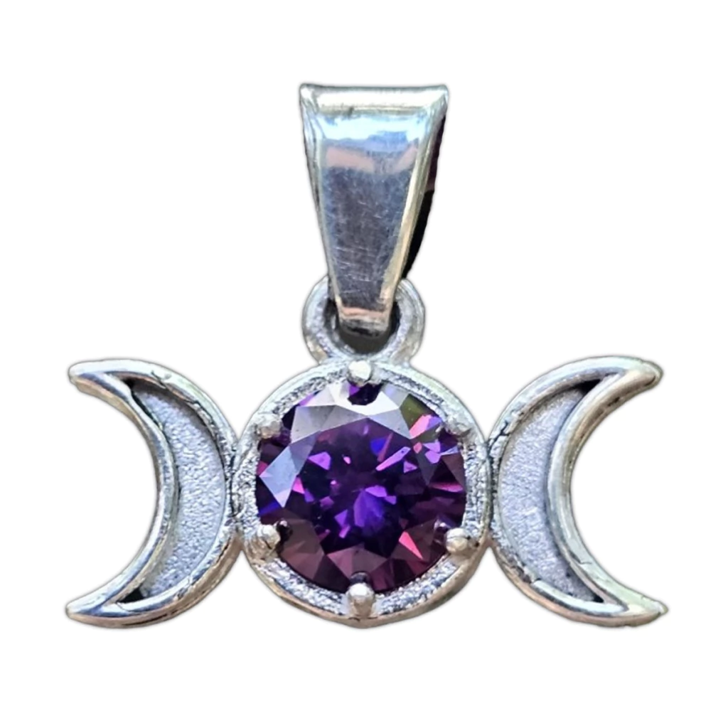 Dije Mini Diosa Triple Luna con Zirconia. Pieza de aproximadamente 20mm disponible en Plata 925 maciza, Bronce bañado en Oro 18k, Alpaca bañada en Plata 925, y Zirconia Cúbica disponible en diversos colores.