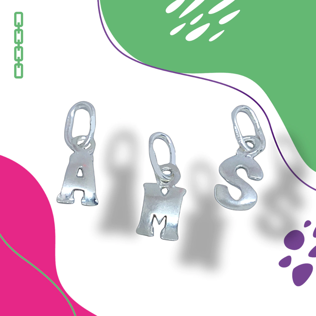 Dije de Plata 925. Letras , 1cm de largo sin contar la argolla x 0,6 cm