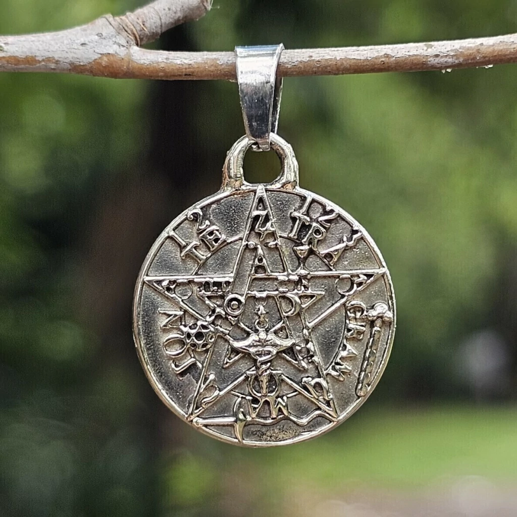 El Tetragramatón es un amuleto de protección y poder que conecta con la fuente de todo el conocimiento y saber. Es un símbolo formado por 5 puntas que representan la dominación del espíritu humano sobre la naturaleza y los elementos. La palabra Tetragramatón, proviene del griego y significa “Cuatro Letras” "Yod, Hei, Vav , Hei". En su posición de una punta arriba representa la Luz.Este dije es una versión mása pequeña para quien guste llevar este poderoso amuleto de una forma más delicada o discreta.Media: 22mm + el drop pasa cadenaaDisponible en Alpaca, o también en Plata 925 con una demora para el envío de 1 a 2 semanas en este último material, ya que se elabora a pedido.