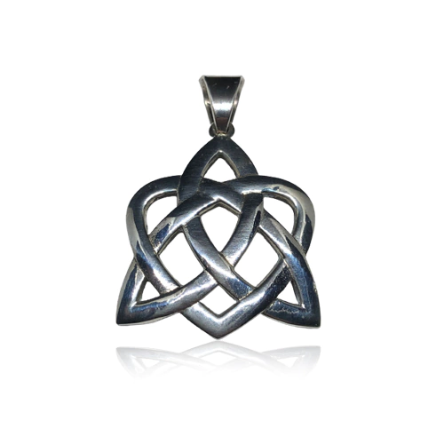 La triqueta o triquetra, más tarde llamada también triquel, es un símbolo de origen indoeuropeo que alude a la triple dimensión. También simboliza la vida, la muerte y el renacimiento. Se ha encontrado principalmente en estelas celtas, en runas vikingas y en ollas y vasijas romanas.En este diseño también se añade un Corazón entrelazado a la Triqueta.Dije elaborado en Plata Alemana (Alpaca), Bronce o Plata 925 a elección.Medida: 4,5mc x 3cmPeso: 10,2gr (Plata)(OPCIONAL): Cadena de Acero Quirúrgico y cadena bañada en Oro para la versión en Bronce dorada (mayor valor).
