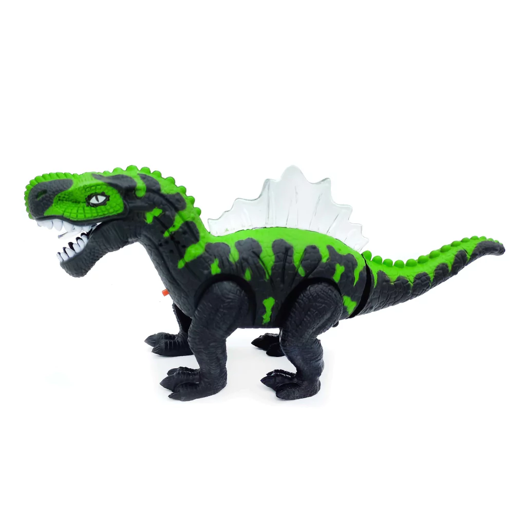 Dinosaurio de juguete que camina con Luces de colores en la parte de arriba y en la boca. Con un botón ON-OFF el dinosaurio comienza su andar, moviendo la cola y las patas.Además, hace sonido rugidos de dinosaurio. Súper divertido para los más chicos.Material: Plástico.Para niños mayores de 3 años. Permite el desarrollo de la interacción entre los niños, estimula la imaginación, la comunicación y la capacidad de pensamiento. Ayuda a los niños a distinguir formas y colores y estimula la coordinación motora y la eficiencia manual.En Caja. Utiliza 3 pilas “AA” (No Incluidas).Medidas del dinosaurio: 31 cm (largo) x 13.5 cm (alto) x 8 cm (ancho)Medida de la caja: 35 cm (largo) x 16 cm (alto)