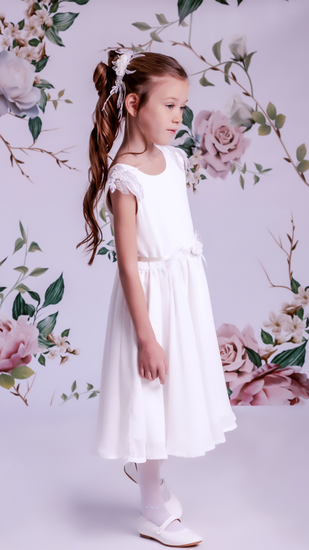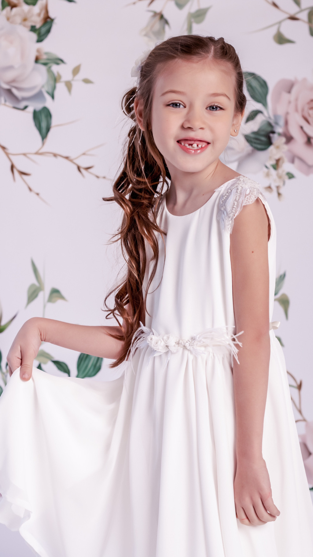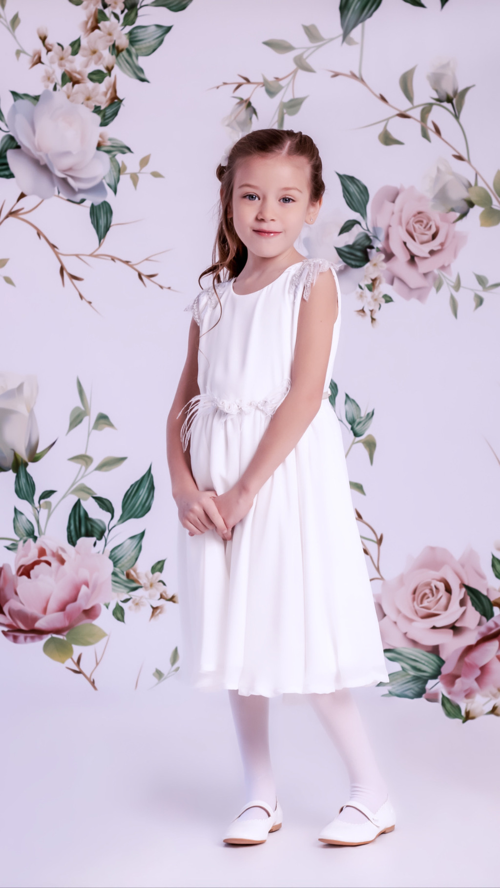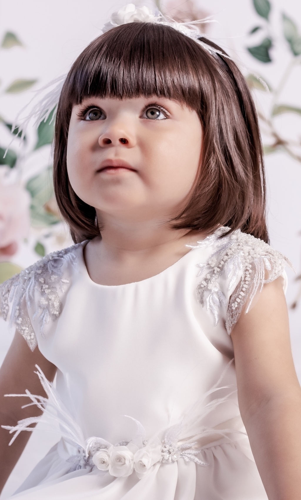 El Diseño Lady Cisne está confeccionado en un género importado en tono off-white, de impronta delicada y romántica. Es un vestido sutil donde resalta la cintura y vincha bordada con pedrería, flores y plumitas, los hombros bordados a mano en perlas a combinación lo hacen un vestido ideal para cortejo/bautismo. Es un modelo fresco, su forreria es de algodón (como en todos los Soñados). Su tela importada es liviana y con mucho vuelo. La falda es amplia con caída.