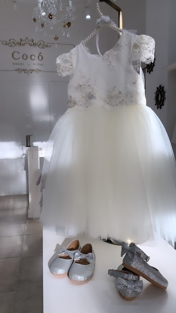 Descripción:El Diseño Lovely Silver de edición limitada es un vestido con falda de princesa, mucho volumen y capas de tul de novia importado. Bordado el canesú en hilos de plata, espalda en transparencia y detalle de rosa (que es un prendedor) en la espalda. Es un diseño de alta costura con géneros importados su forreria delicada en algodón lo hacen fresco y transpirable para la piel de las bebés. Puede ser con manga corta tipo princesa o también en manga larga bordada.Qué incluye:El precio incluye el vestido publicado, en caso de querer agregar un accesorio para el cabello podes consultarnos las opciones en stock.Talles en que se confecciona:Se confecciona desde 0m al T4 de niña.IMPORTANTE:Es una prenda de alta costura:no contamos con stock inmediato de todos los Vestidos Soñados en todos sus talles, por tal la demora en confeccionar es de aproximadamente 15 días desde la fecha de pago y coordinación de medidas. La web permite comprar el vestido, pero no muestra el stock real.Podes consultarnos a nuestro WhatsApp el stock de entrega inmediata, listos para enviar/retirar.Respecto al talle:selecciona el que más se aproxime a sus medidas y edad (encontras las medidas de los Vestidos Soñados en las tablas de abajo). Luego nosotros nos vamos a comunicar por privado para pedirte sus medidas; son muy simples de tomar a través de un instructivo que te brindamos. De esta forma vamos a poder asesorarte con el talle correcto (cada Soñado tiene atención personalizada).Si todavía falta bastante tiempo para tu evento (tres meses o más):confeccionamos y entregamos el vestido dentro de los siguientes dos meses de realizado el pago. Una vez que recibamos las medidas, vamos a poder asesorarte con un talleestimadopara el día del evento, pero queda a consideración del cliente definir el talle ya que no podemos saber con tanta anticipación cuál va a ser el talle correcto. A través de estos años diseñando, sabemos que con 2 mes de anticipación, el talle no varía (esto es igual para ballerinas y abrigos).Hay que tener en cuenta los tiempos de envío:esto dependerá de las empresas de correo y podes calcularlo con tu código postal, también podes retirar directamente por nuestro local o podemos enviar una motomensajeria a GBA y CABA (todas estas opciones las elegís en la compra).Tabla de medidas: