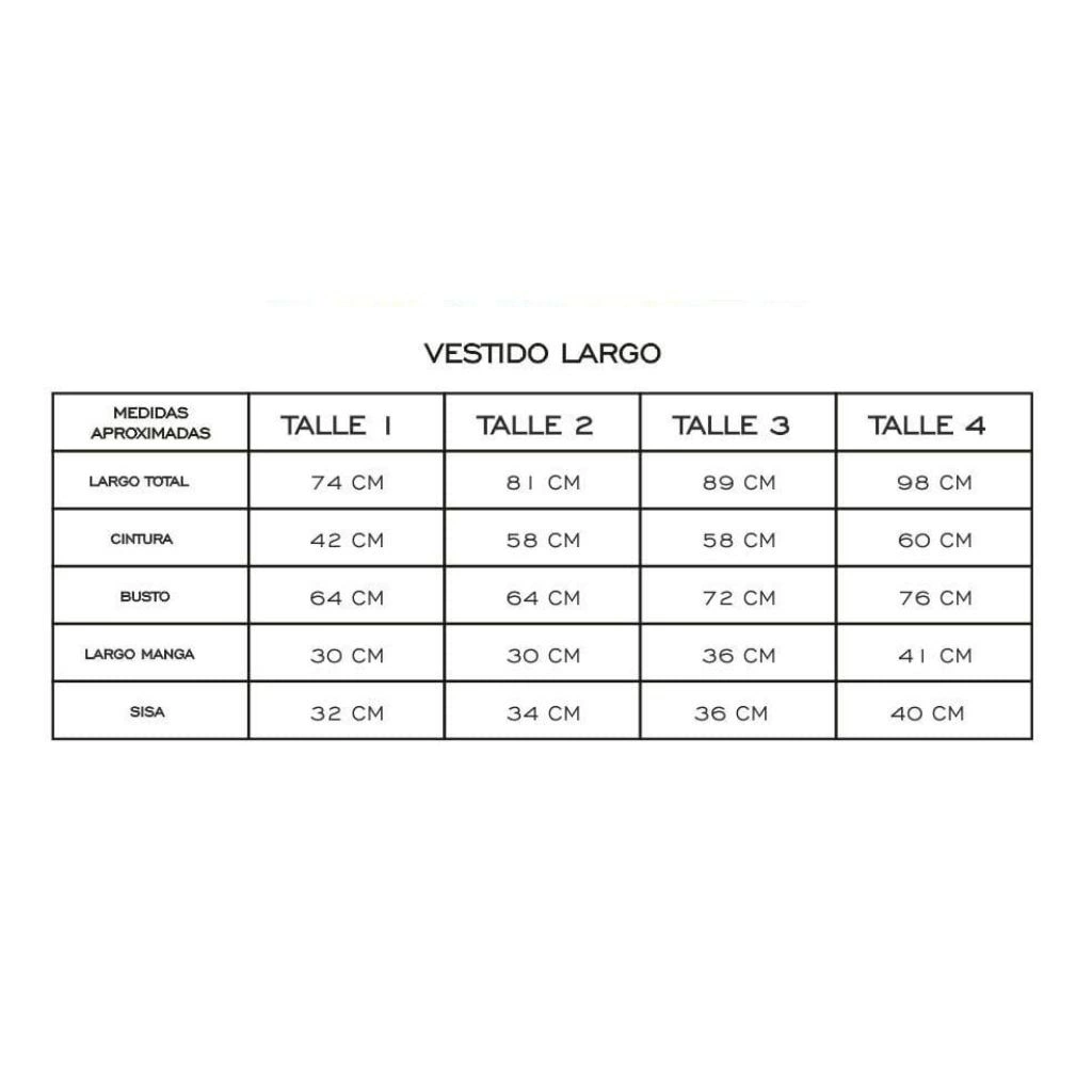 Vienen 3 talles. Talle 1-2-3. En las fotos estan las medidas de cada talle.