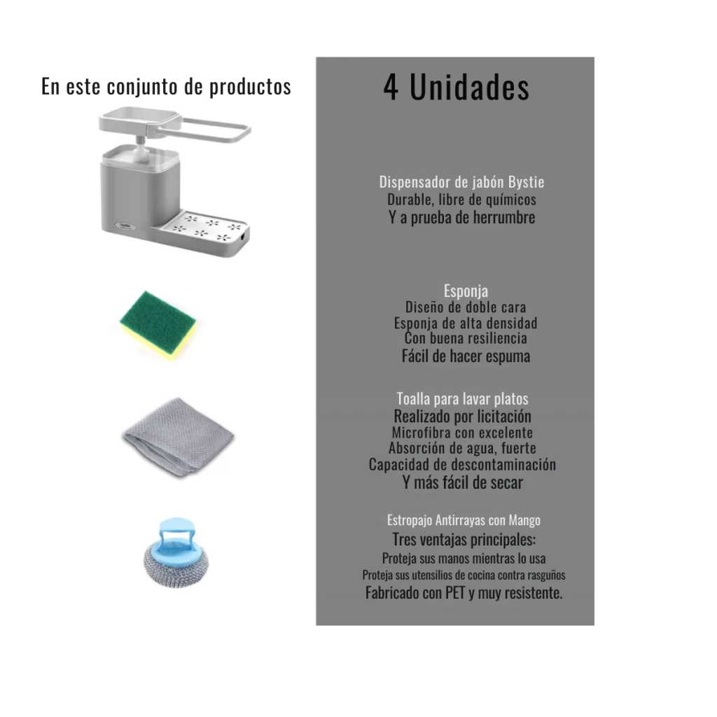 Dispenser de Detergente con Esponja y Organizador de Toalla