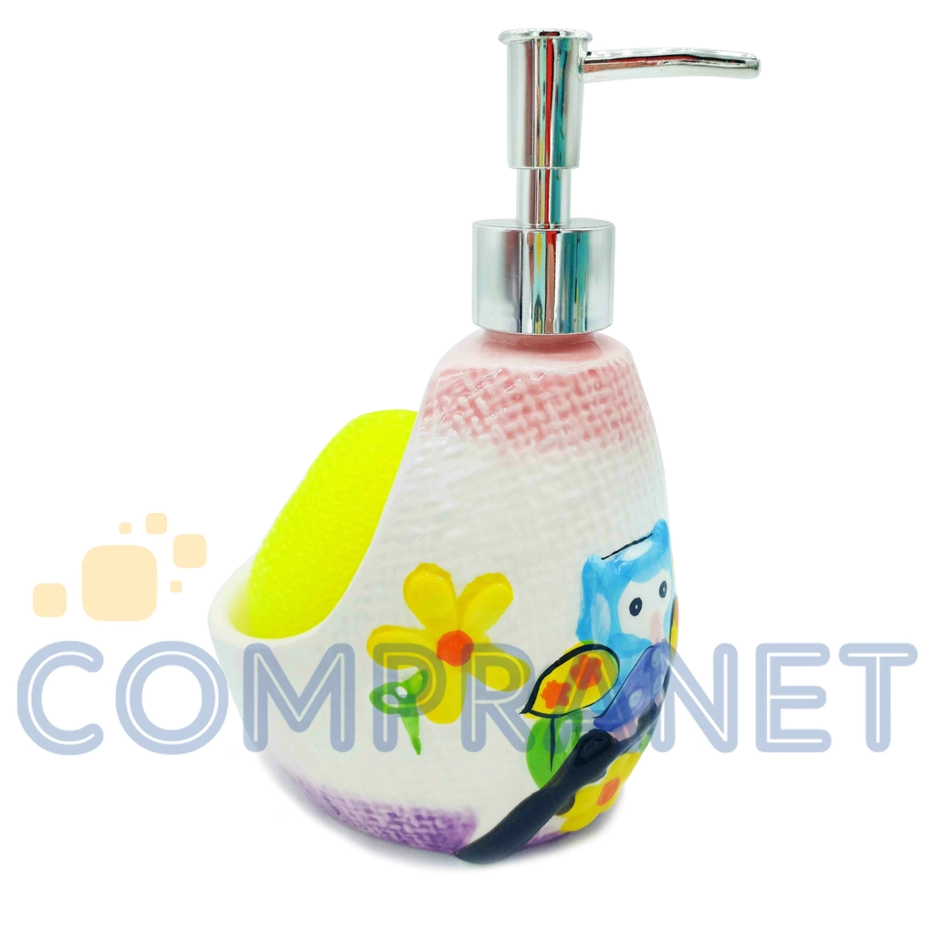 Dispenser de detergente/Jabón con porta-esponja, con dosificador que permite extraer el detergente de manera fácil y rápida. Con espacio lateral para colocar la esponja, dejando que el agua se deposite allí.De fácil recarga, simplemente desenrosque y llene el dispenser con el detergente o jabón.Incluye una esponja. De diseño moderno y adaptable a la cocina o al baño.Capacidad del dispenser: 300 ml.Dos modelos disponibles de Búhos.Material: CerámicaMedidas del Dispenser: 11 cm (largo) x 17,5 cm (alto) x 10 cm (prof.)Medida de la Caja: 14 cm (alto) x 12 cm (largo)