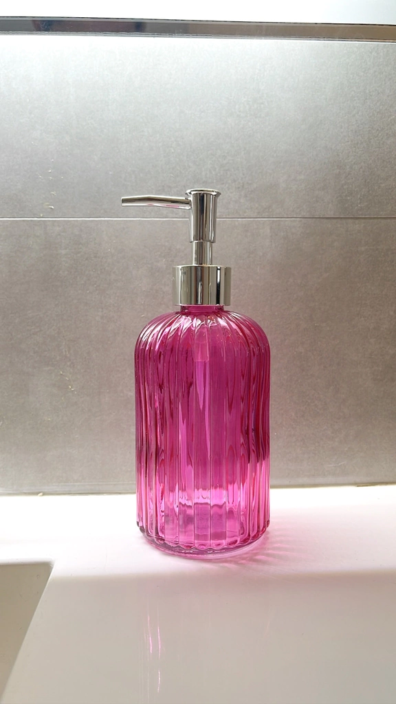 VIDRIO COLOR ROSA. VALVULA EN CROMO500 CC