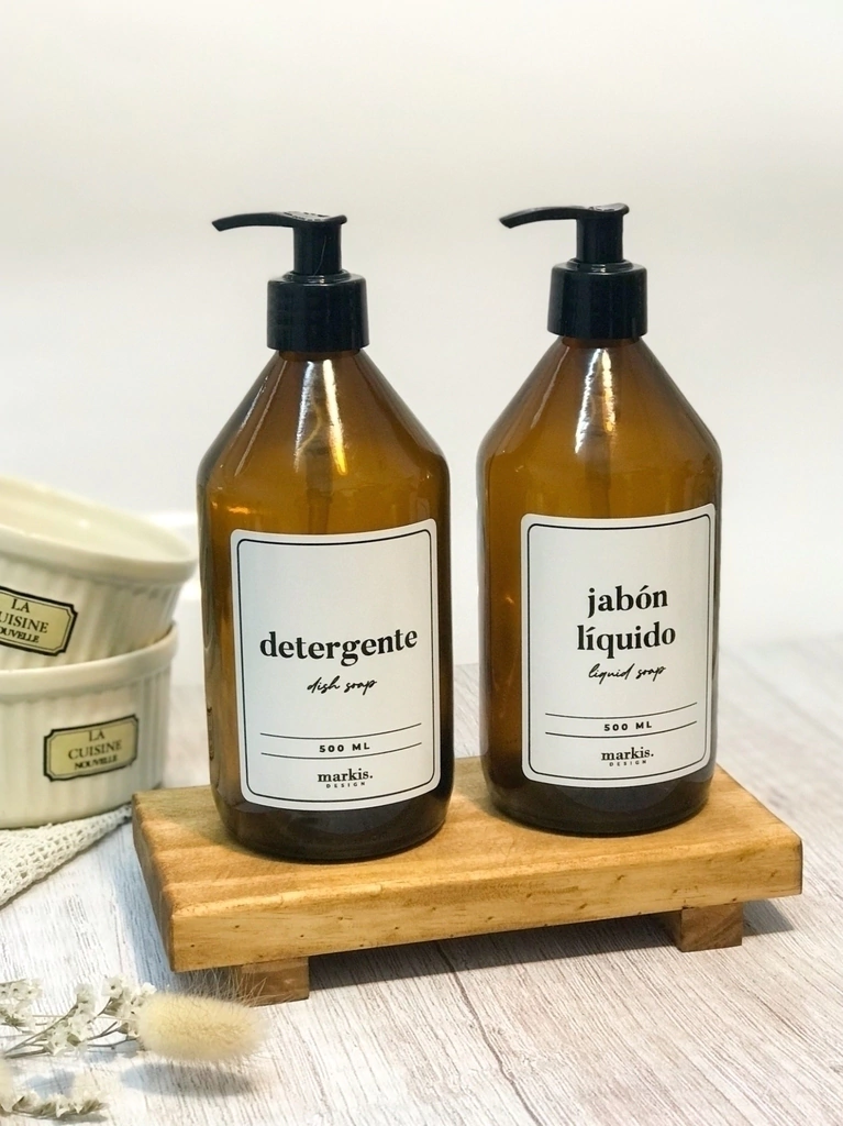 Dispenser de plastico color ambar de 500 ml con tapa cremera. Etiqueta blanca.Opciones:- Alcohol en gel- Detergente- Jabón líquido*No incluye relleno