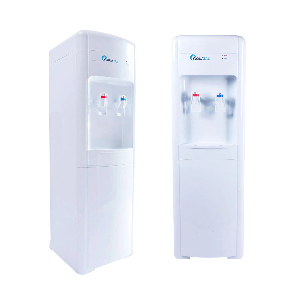 Dispenser con 2 filtros, uno de carbón activado que elimina cloro gustos y olores, y uno de sedimento, que retiene las partículas no disueltas.Filtro de agua conectado a la red.2 temperaturas (fría/caliente).2 filtros (Carbón Activado + Sedimento)Canillas de empuje.Medidas: 32 x 30 x 95 cm.Leds indicadores de funcionamiento.Agua fría hasta 6°C.Agua caliente hasta 95°C.Kit completo de instalaciónColor blanco.Caldera y tacho de frío en acero inoxidable.Muy rápida recuperación de temperaturas.Motocompresor silenciose (112w de alto rendimiento).Contar con un dispenser de agua en tu domicilio, comercio u oficina es una manera ideal de ahorrar dinero, disminuir el impacto sobre el medio ambiente y poder disfrutar la conveniencia de tener agua fría o caliente en cualquier momento.