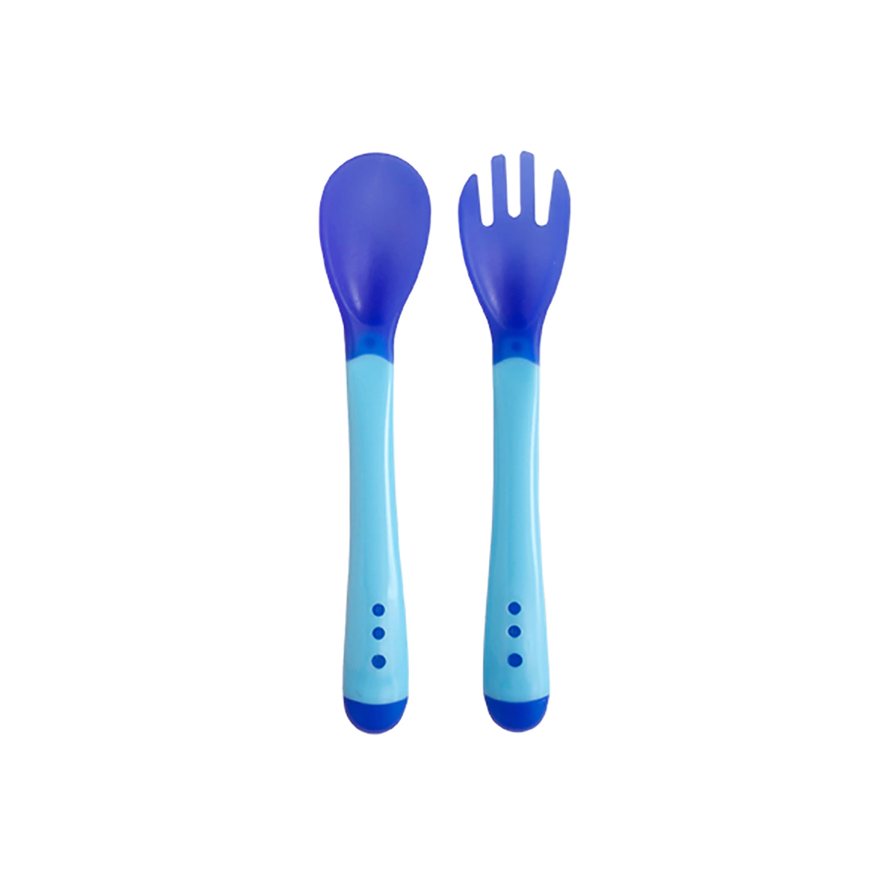 Cuchara y Tenedor con sensor de temperatura que se activa con el calor dejando la silicona de color blanquecina.