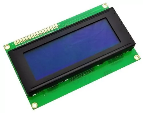 Display LCD 20 caracteres 4 lineasTexto Blanco - Fondo AzulDescripcion GeneralDisplay LCD de 20 caracteres x 4 lineas. Posee el controlador ST7066, el mas usado en este tipo de dispositivo. Backlight azul