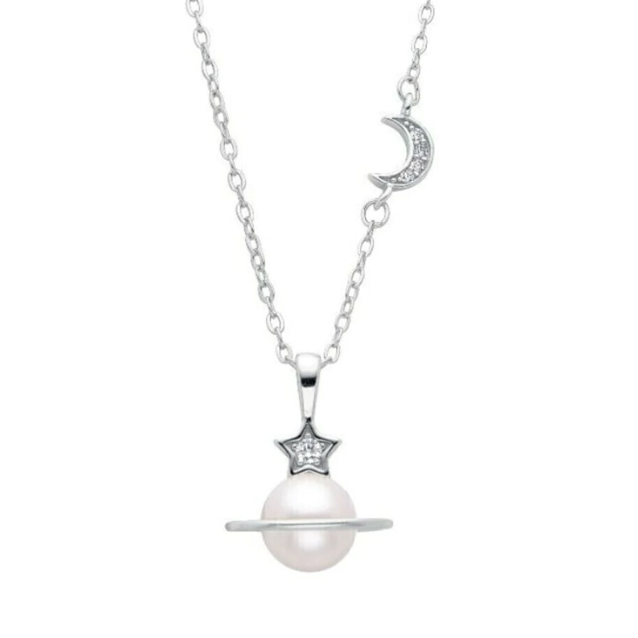 DIJE CADENA LUNA Y ESTRELLA EN PLATA 925 CON DETALLE DE PERLA