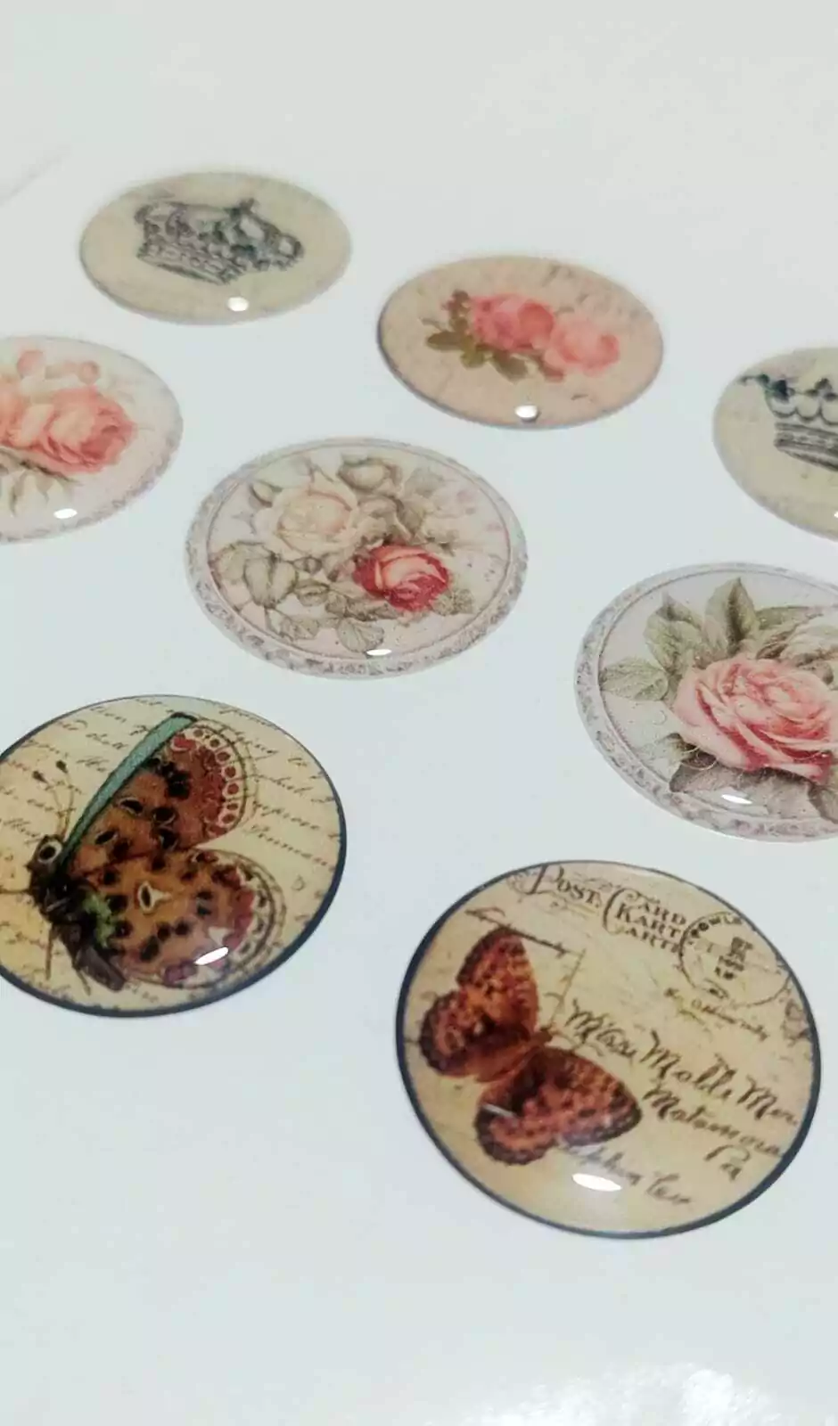 Impresos en base blanco, son domes de resina rigida, super resistentes, se pueden mojar, lavar y limpiar con cualquier producto de limpieza!