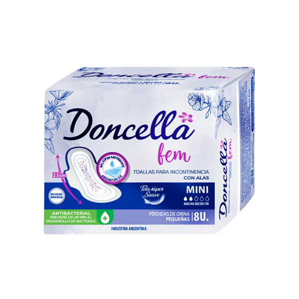Las Toallas Doncella se adaptan perfectamente a tu cuerpo y a la necesidad de cada momento, ofreciendo protección y seguridad superior. Gracias a su centro ultra absorbente te mantendrás siempre fresca.Beneficios- Antibacterial: Previene un 99% el desarrollo de bacterias- Apta para pérdidas de orina pequeñas- Aptas para incontinencia, máxima absorción- Formato anatómico- Nuevos canales- Centro Ultra absorbente- Tela extra suave- Con gel