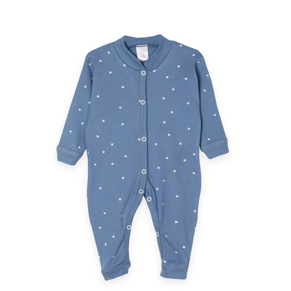 Enterito cuello mao con broche y puñoEstampado estrellasColores:Aero con estrellas blancasTerracota con estrellas blancasTalles: 2 al 4 Especiales: 5 y 6Interlock peinado algodón 100%