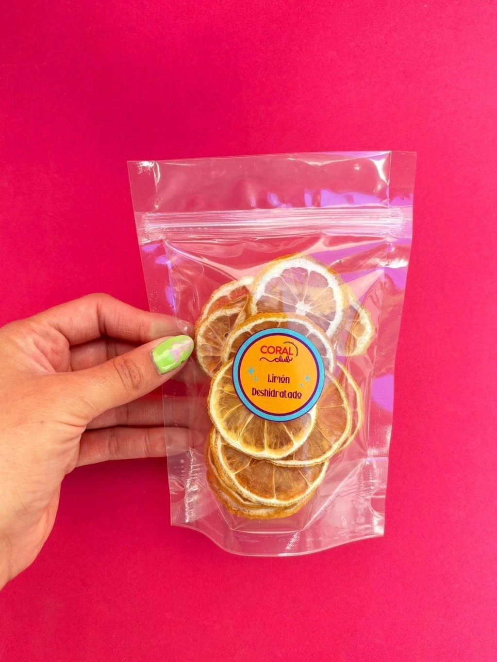 Doypack de limon deshidratado. 100% fruta fresca sin agregados ni conservantes.