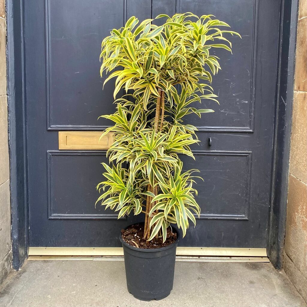 La primer imagen es a modo ilustrativo, las secundarias corresponden a la planta real. Las características de las plantas pueden variar según la época del año en la que se encuentre.Usos: planta de interior en macetas.Follaje: perenne.Riego: moderado.Exposición: buena luz pero no sol directo.Floración: no tiene una flor de valor ornamental.NOTAS:Las Drácenas se mantienen y crecen mucho mejor con las raíces apretadas, en tiestos pequeños. Si tiene demasiada maceta crecen muy lentamente y sufren del encharcamiento de la tierra a la que sus raíces no acceden, en el fondo del tiesto y las hojas amarillean y se tumban más fácilmente. No necesita mucho espacio ya que crece hacia lo alto, pudiendo alcanzar los tres metros de altura.
