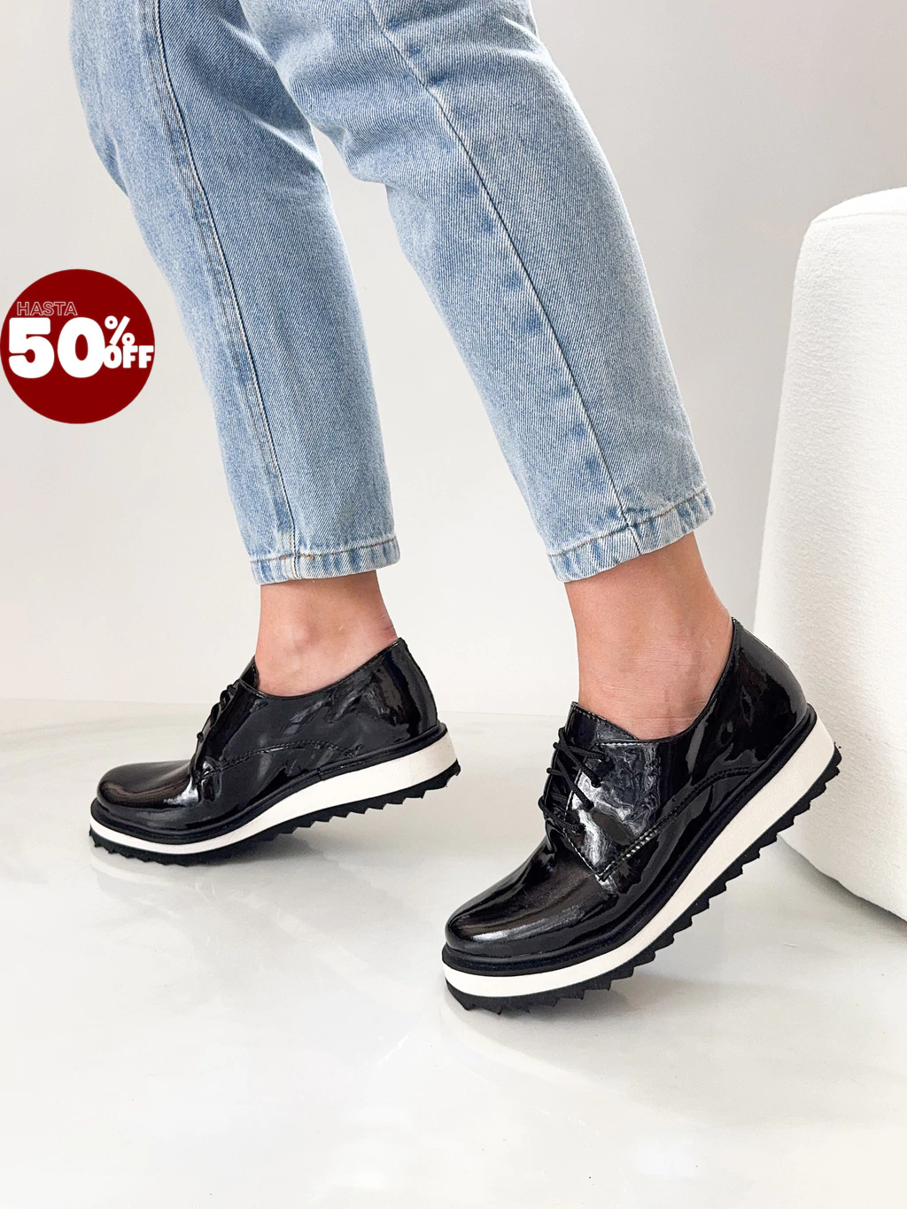 Mocasines acordonados de cuero sintético acharolado.La base es de goma eva. Son muy livianos.Material: Cuero sintéticoAltura: 3 CmHorma: NormalLa tabla de talles corresponde a la medida del pie.Si la horma es normal sugerimos llevar tu talle habitual.Si la horma es chica recomendamos llevar un talle más.Si la horma es grande recomendamos llevar un talle menos.TABLA DE MEDIDAS:35: 23 Cm36: 23,5 Cm37: 24 Cm38: 25 Cm39: 25,5 Cm40: 26 CmMuy importante!!! Para la confección de los zapatos se utilizan cueros y cueros sintéticos seleccionados de alta calidad. Al ser únicos y naturales, pueden presentar alteraciones en el tono, marcas, arrugas o pliegues. Dichas características no se consideran como imperfecciones ya que son manifestaciones propias del material.