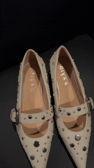 *Ballerinas en punta, con apliques de distintos diámetros colocadas a mano, con tira regulable y hebilla en niquel