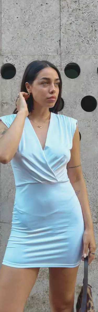 Vestido con escote y hombreras