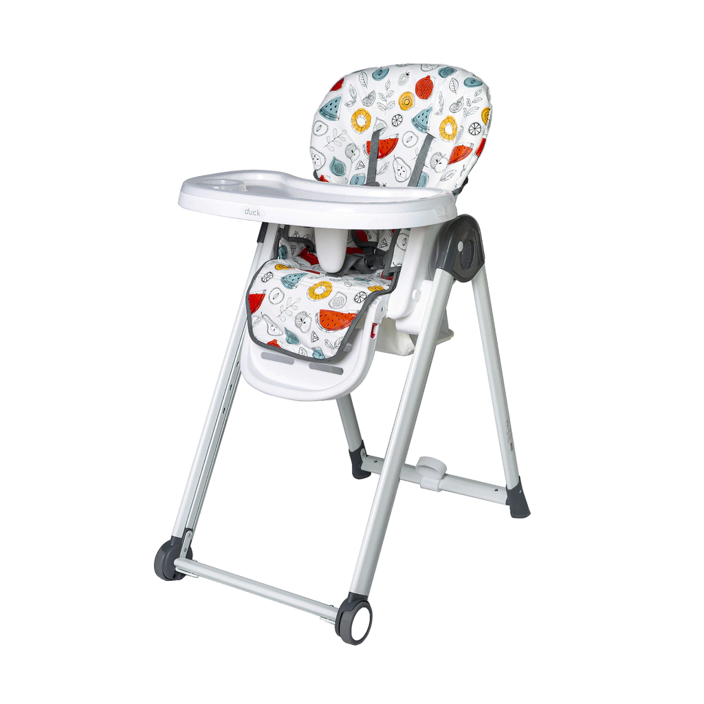 Duck Silla Alta de Comer Doble Bandeja Posiciones y Ruedas Plegable Danna.- Doble Bandeja.- Arnes de 5 puntos.- 3 posiciones de reclinado.- 6 alturas.- Apoya pies regulable en dos posiciones.- Apoya Brazos Rebatible.- Reclinacion total.- Plegado Compacto.MEDIDAS:- CAJA:Alto: 89 cm.Ancho: 22 cm.Largo: 50 cm.- ABIERTALargo: 48 cm.Alto: 105 cm.Profundidad: 83 cm.- PLEGADA:Largo: 48 cm.Alto: 88 cm.Profundidad: 40 cm.