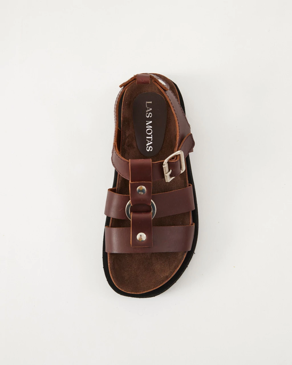 Te presentamos el modelo Duko, son prácticas, urbanas, cancheras, cómodas, son para TODO. Las Duko no te van a abandonar nunca. Están confeccionadas 100% en cuero vacuno liso color choco y costuras a tono. Su diseño cuenta con una horma de triple tiras con una argolla de zamak color níquel y agarre en el tobillo con hebillas para regular el ajuste a medida. La plantilla está forrada en cuero y es anatómica, esto hace que se adapte perfectamente a tu pie. Tiene una base artesanal de goma eva con suelin antideslisante. ¡SON SÚPER LIVIANAS!Altura de base: 2,5 cmPlantilla más base: 4,5 cmPeso total: 880gTabla de talles