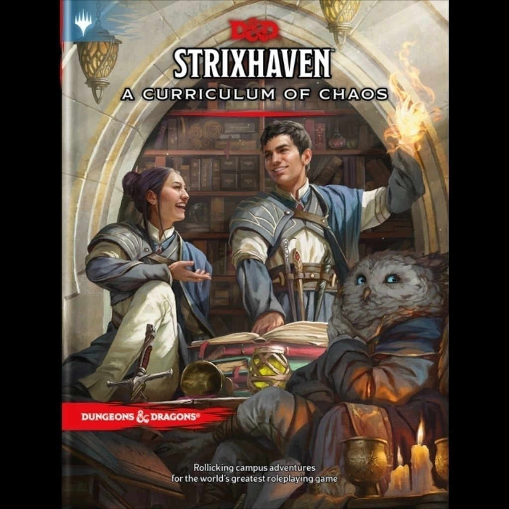 Strixhaven: A Curriculum of Chaos introduces the fantastical setting of Strixhaven University, drawn from the multiverse of Magic: The Gathering, and provides rules for creating characters who are students in one of its five colleges. Characters can explore the setting over the course of four adventures, which can be played together or on their own. Each adventure describes an academic year filled with scholarly pursuits, campus shenanigans, exciting friendships, hidden dangers, and perhaps even romance.